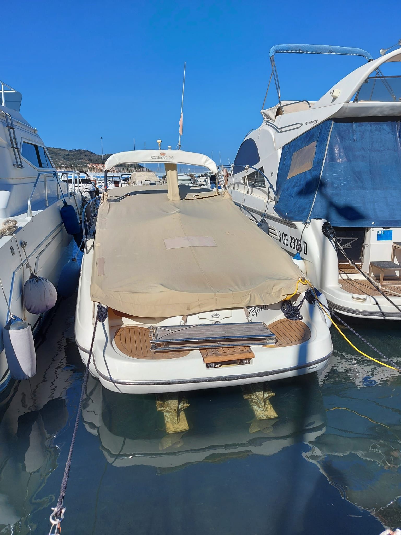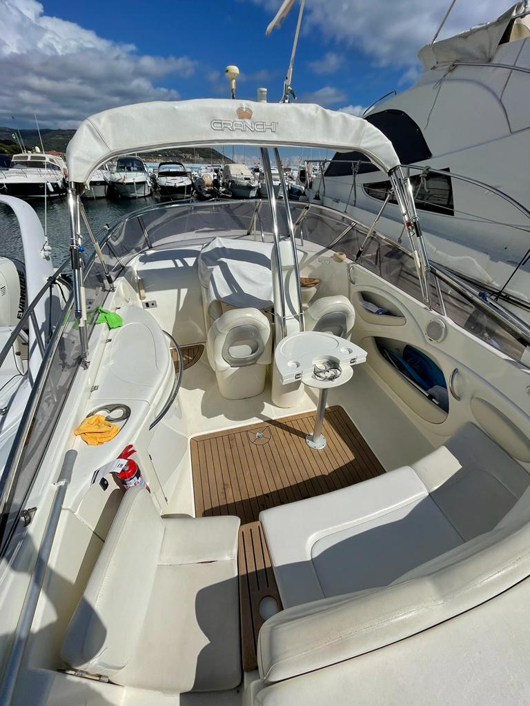 Completo di bimini, capottina completa , cuscinerie di prua e di poppa, teli oscuranti finestre, copri strumenti e copri sedile di guida. Garage per tender. Super accessoriato elettronicamente.