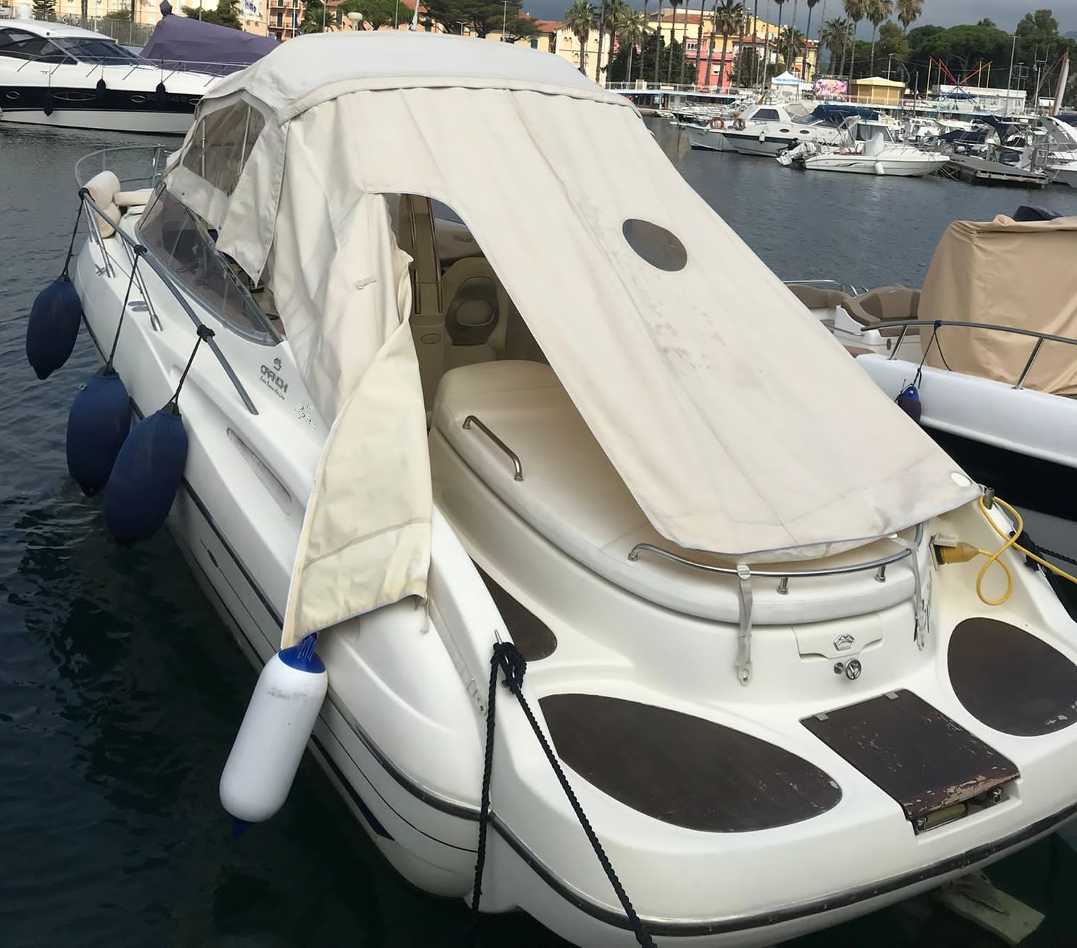 Completo di bimini, capottina completa , cuscinerie di prua e di poppa, teli oscuranti finestre, copri strumenti e copri sedile di guida. Garage per tender. Super accessoriato elettronicamente.